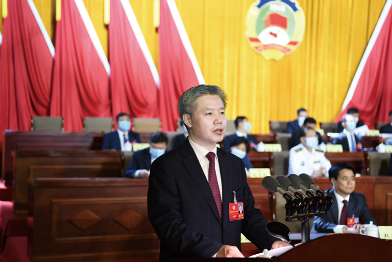 劉文勤作市政協(xié)常委會工作報告。本網(wǎng)記者陳琦嘉李國強(qiáng)攝