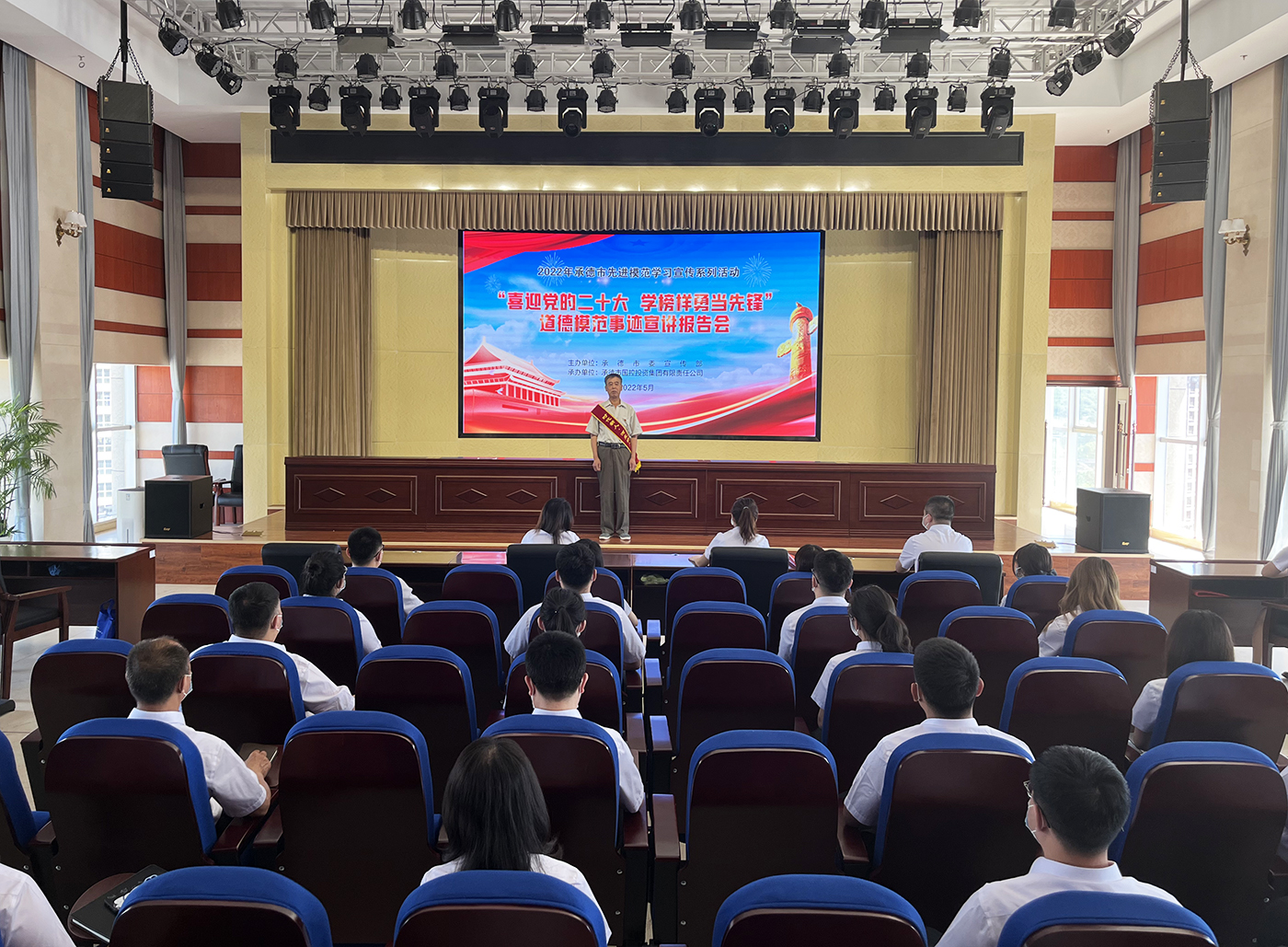 為進(jìn)一步發(fā)揮“新時代承德榜樣” “道德模范”先進(jìn)典型的示范引領(lǐng)作用,大力弘揚塞罕壩精神,全面助力“四個再建功立業(yè)”,匯聚起公司高質(zhì)量發(fā)展的精神動力,喜迎黨的二十大勝利召開,5月27日,由市委宣傳部主辦的“喜迎黨的二十大? 學(xué)榜樣爭當(dāng)先鋒”道德模范事跡宣講報告會在國控集團(tuán)成功舉行。