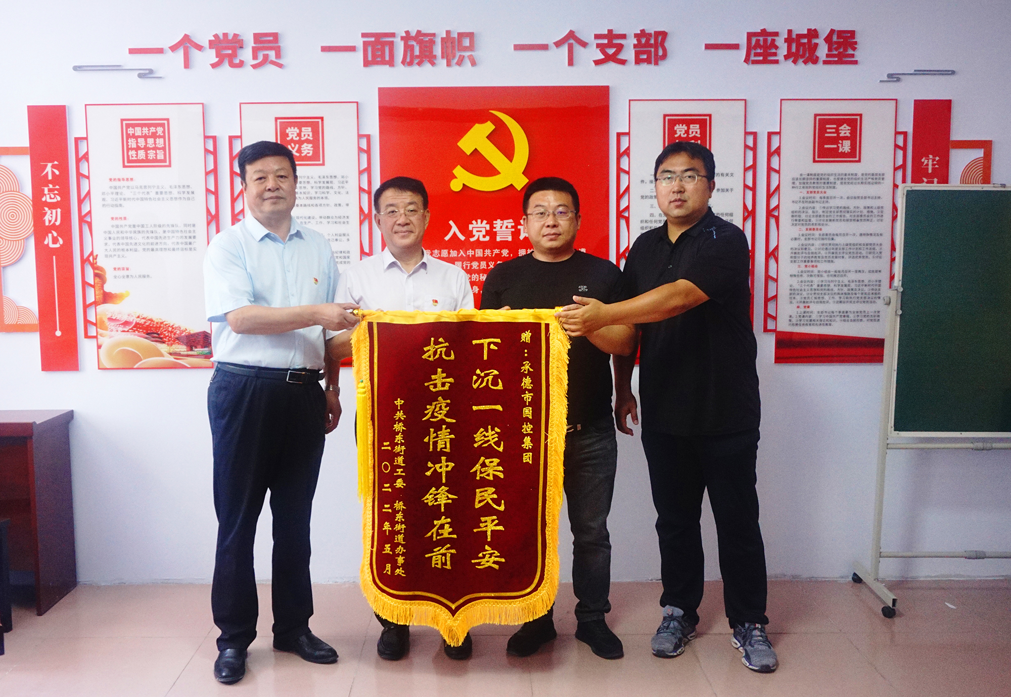 捐贈(zèng)儀式后,國控集團(tuán)領(lǐng)導(dǎo)班子與橋東街道、會(huì)龍山社區(qū)主要負(fù)責(zé)人,就結(jié)對(duì)幫建工作進(jìn)行座談,詳細(xì)了解了創(chuàng)城工作開展情況、存在問題及下一步打算,針對(duì)社區(qū)基礎(chǔ)設(shè)施不完善、公共停車泊位施劃不合理、樓道雜亂和小廣告亂貼等問題,研究制定了具體舉措。會(huì)上,為感謝國控集團(tuán)在抗擊疫情和結(jié)對(duì)幫建工作中的大力支持,橋東街道、會(huì)龍山社區(qū)向集團(tuán)公司贈(zèng)送了“下沉一線保民平安、抗擊疫情沖鋒在前”錦旗。
